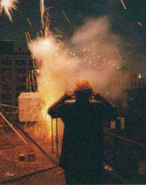 Because we are nerds we thought it would be fun to control a choir of appliances (like blenders and power tools) with a wireless glove in front of a DJ playing drum 'n' bass. A shoddy tinfoil roof was supposed to shield the performers from a shower of fireworks. We also threw around gallons of white paint, destroyed office furniture with chainsaws, and shot bottle rockets at the audience. We were young and in love. With Erok Industries and Guerilla Systems.
